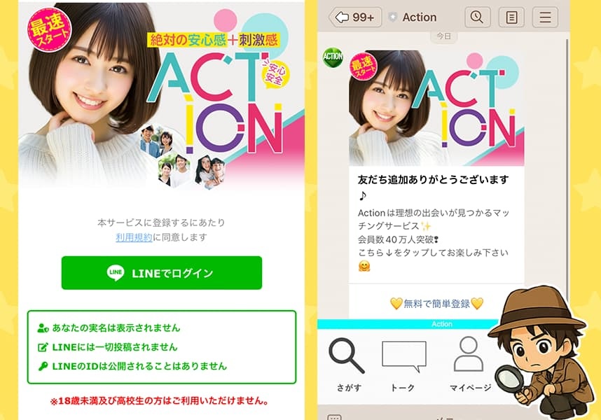 「Action(アクション)ってマジで出会えるの?」「なんか怪しくない?サクラじゃね?」