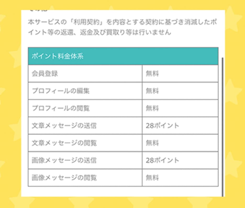 メッセージ送信と画像送信にはポイントが必要で、1回28ポイント消費!円にすると280円ね。