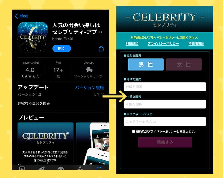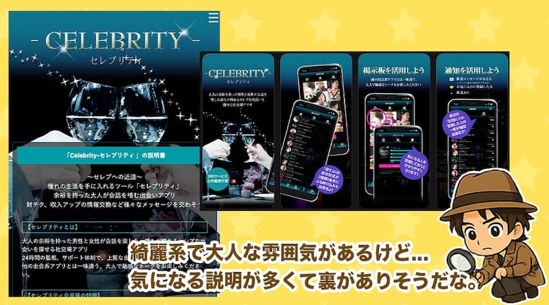 この記事は、「セレブリティ(Celebrity)」の出会い系アプリを調査した記録です。