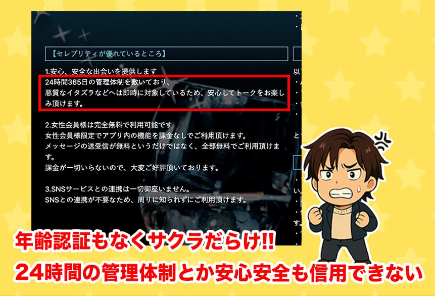 セレブリティ(Celebrity)は出会えない?サクラ・業者だらけの出会い系アプリか徹底検証!