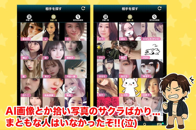 こんな感じで、とにかく出会えない、さくら、危険などの不満の声が多かったです!💦