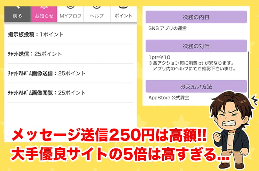 大手や優良の出会い系と比べて、料金設定が4〜5倍ほど高いんよ...