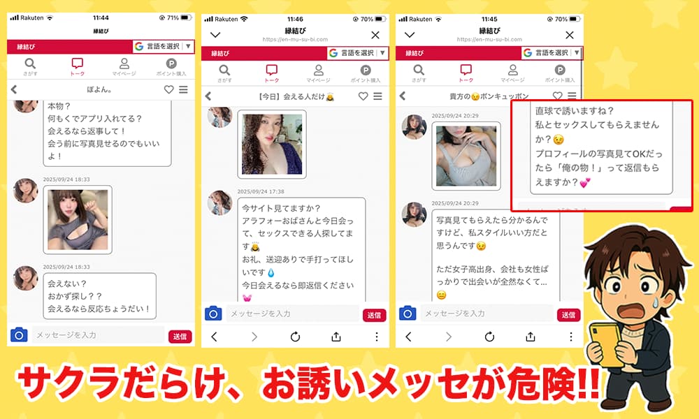 - 登録直後に届く大量メッセージ=サクラや業者による悪質手口!