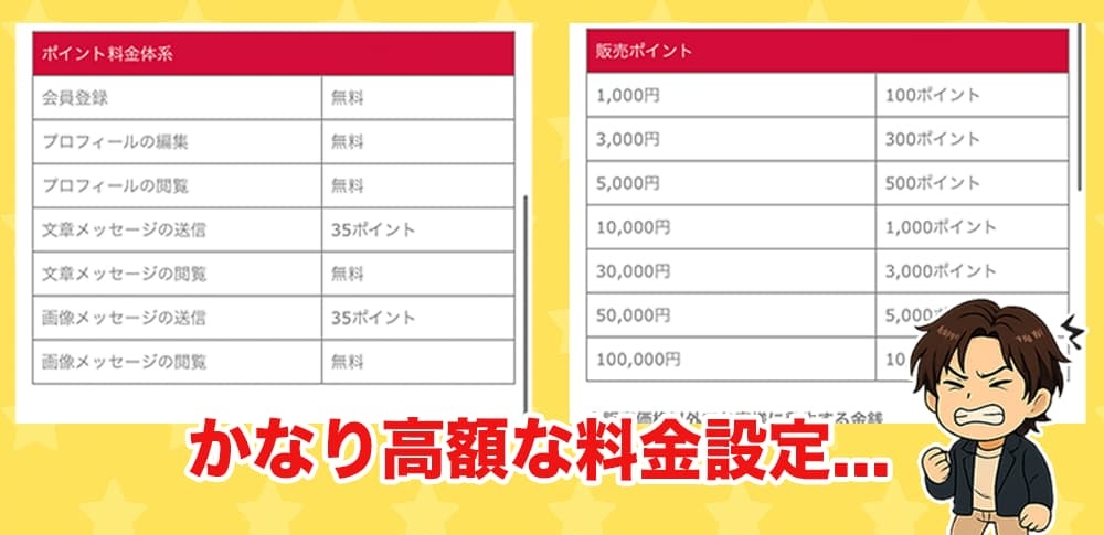 料金もメッセージ1通350円で、優良の出会い系サービスと比べて6〜7倍という高額設定…。