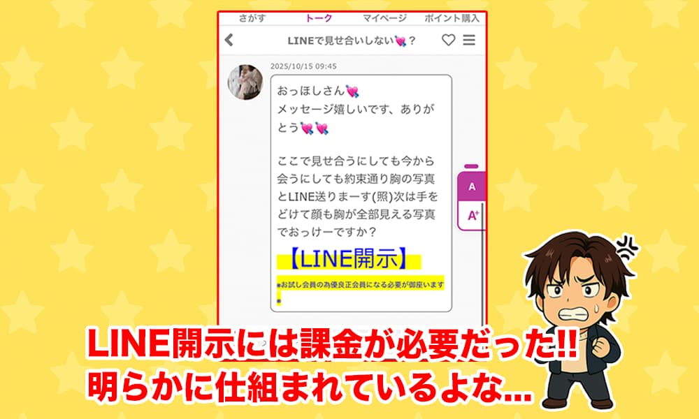 課金しても出会えないし、LINE誘導などの危険行為に巻き込まれるリスクが高すぎる。