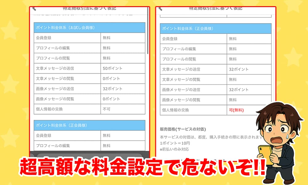 値段が下がって安く見えるかもだけど、それでも大手出会い系と比べて5〜6倍の悪質な料金設定です。