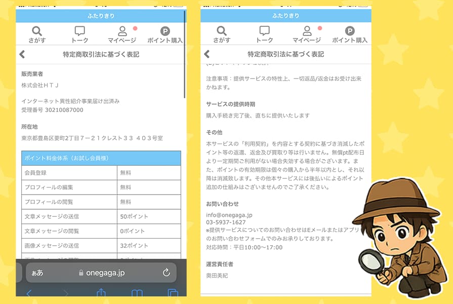 そこで、「ふたりきり」の特定商取引法ページや公式サイトを実際に確認してみた。