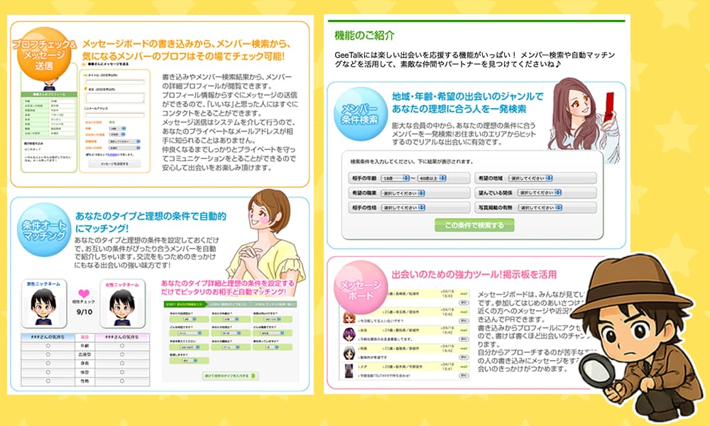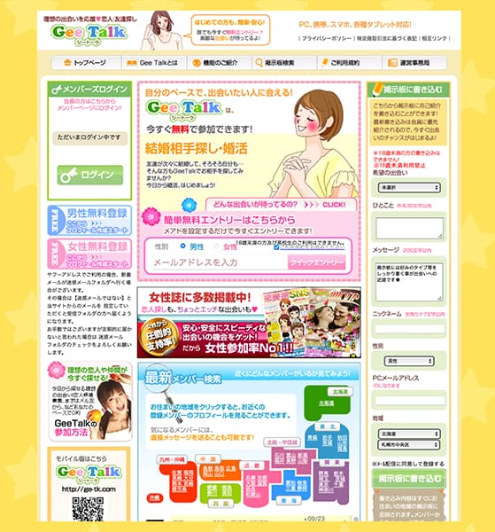 GeeTalk(ジートーク)は「年齢やジャンルを問わず、あらゆる出会いをつなぐプロフィール・メッセージ交換コミュニティ」と紹介されている出会い系サイト。