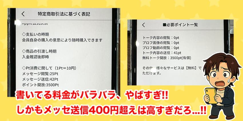 大手アプリと比べると、8〜9倍ほど高い料金設定なんだよね!