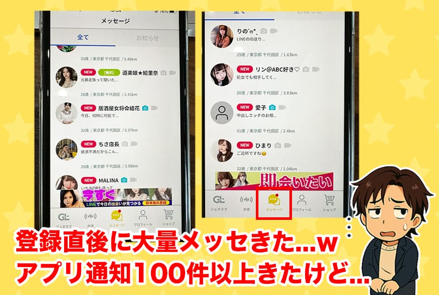 登録して数分後、いきなりメッセージがドカドカ届きだしたぞ!