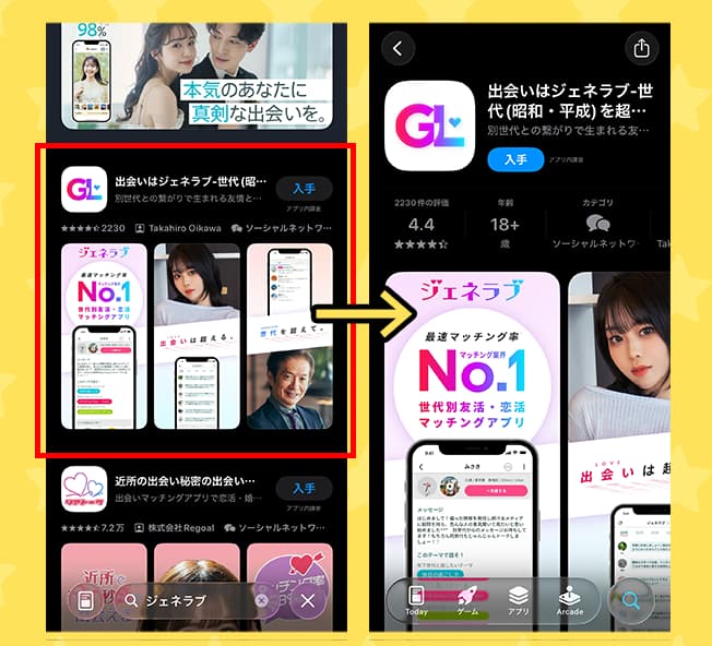 まずAppStoreでジェネラブ(GL)のアプリをダウンロード。