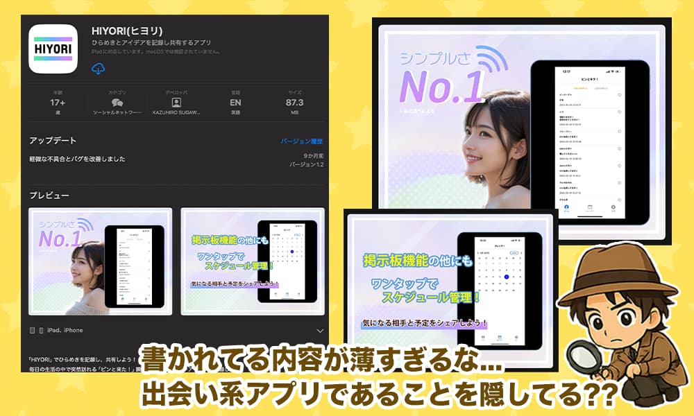 ということで、次はHIYORI(ひより)のアプリに関する口コミや評判を調べて、他のユーザーの声と俺の体験を照らし合わせていくね。