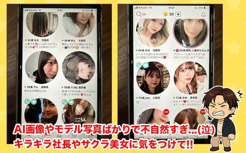 全員、モデル級の美女とかキラキラ女社長だったり、AI写真や外からの拾い物が多かった。