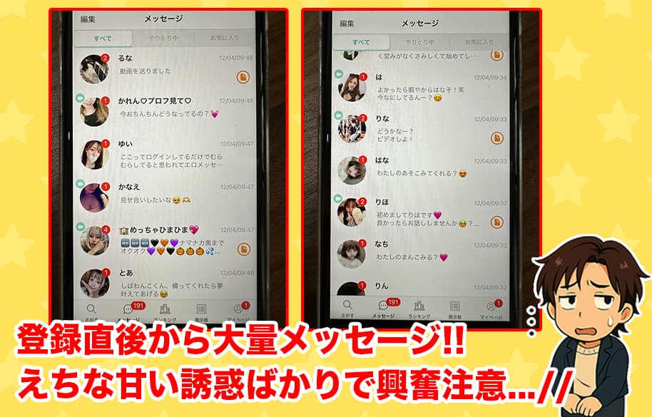 - 登録した瞬間に美女から大量メッセージが来て逆に怖い