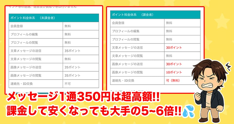 メッセ送信だけで300円前後かかる超高額なサイトだから、会話が長引くほど課金額が増えていきます。