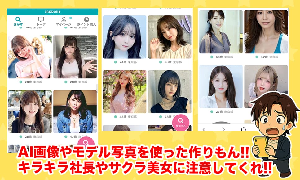 でもその一方で、「イロドリって怪しいの」「出会えないサクラらしい」「怪しい詐欺サイト」じゃないかと不安になる口コミや評判が多い状況です!💦