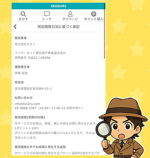 次は、イロドリが異性紹介事業の届出をしているのか、運営会社や責任者情報が信用できるのかを詳しく見ていきます。
