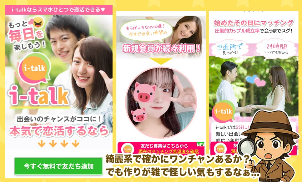 だからこそ、アイトーク(i-talk)の実態や、「これ怪しいのかな?」「サクラしかいない」「本当に出会えるの?」って不安について、俺が直接調べていくぞ!