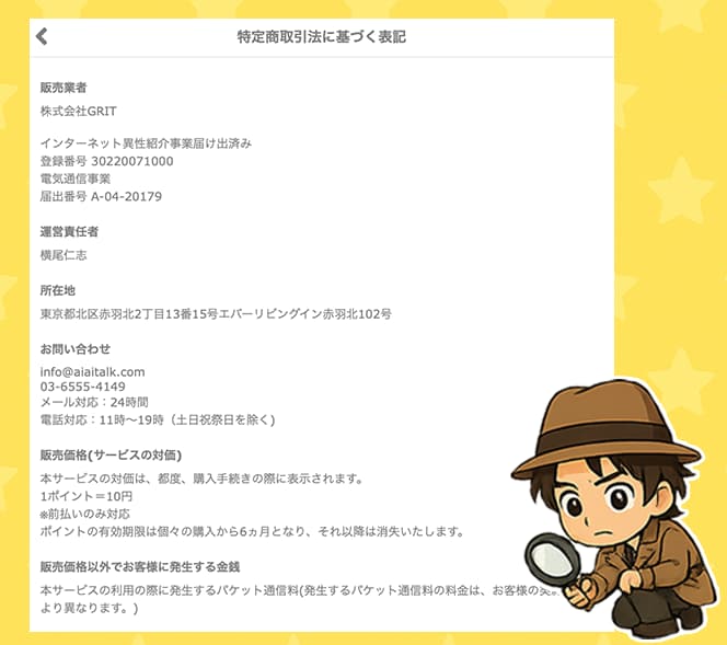 特にアイトーク(i-talk)の場合、料金体系が極端に高く、実態として出会えない構造が見えている以上、法的表記があるから安全とは言えません。