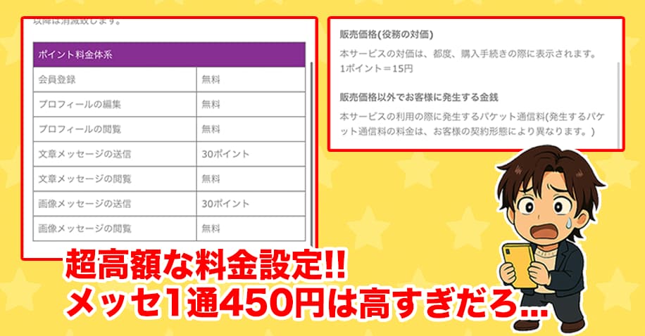 これは、大手や優良出会い系サイトの8倍以上の料金システム…、かなり高いから危ない。