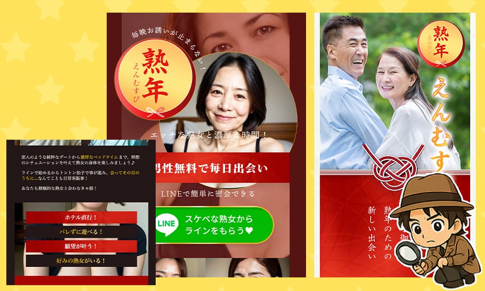 熟年えんむすびはサクラ熟女だらけで出会えない?LINEや口コミ評判の怪しい実態を徹底解説!