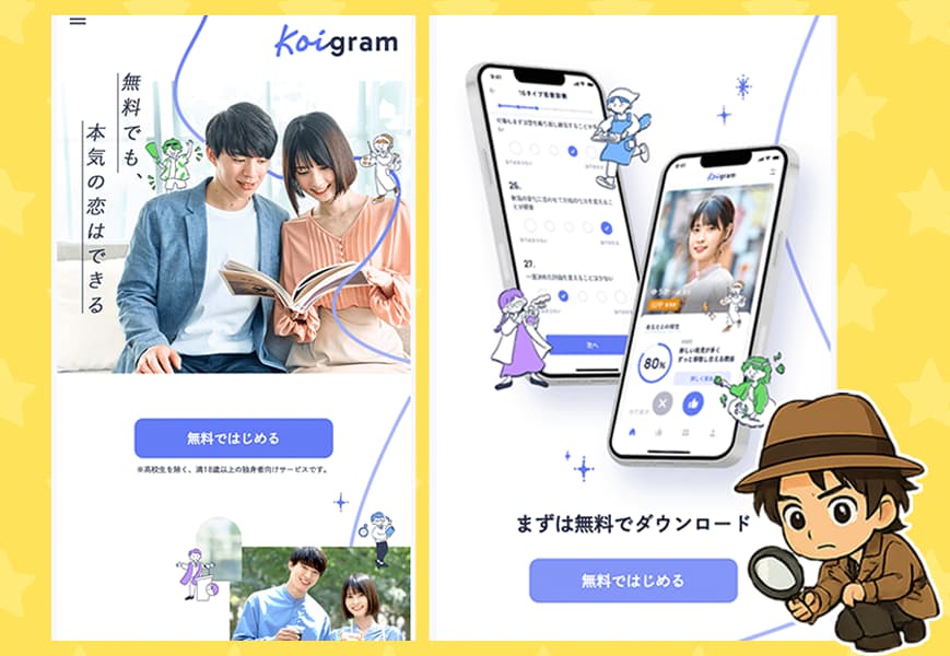 コイグラム(Koigram)は2025年にリリースされた新サービスで、テーマは「無料でも本気の恋を」。