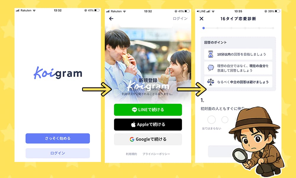 今回は、俺が実際に「コイグラム(Koigram)」に登録して、その中身を検証してみた。