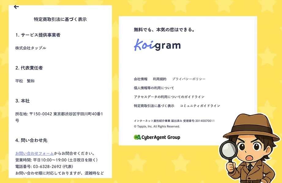次は「コイグラム」の運営元や、異性紹介事業の届出についてシェアしていくぞ。