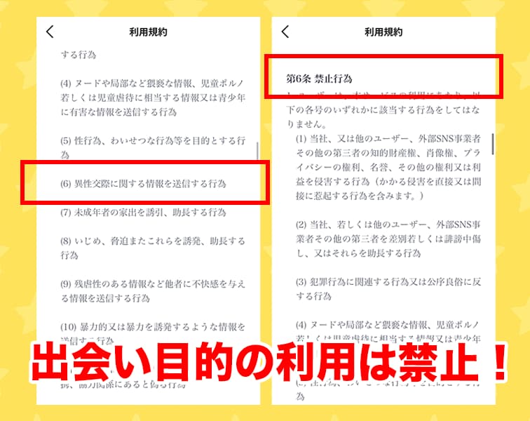 - 利用規約で運営自身が、異性交際目的の利用を禁止している