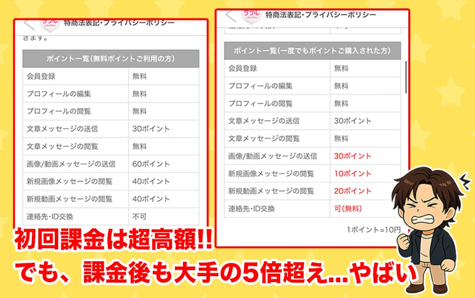 | ラブル(LOVERU) 料金表(ポイント購入者) | |