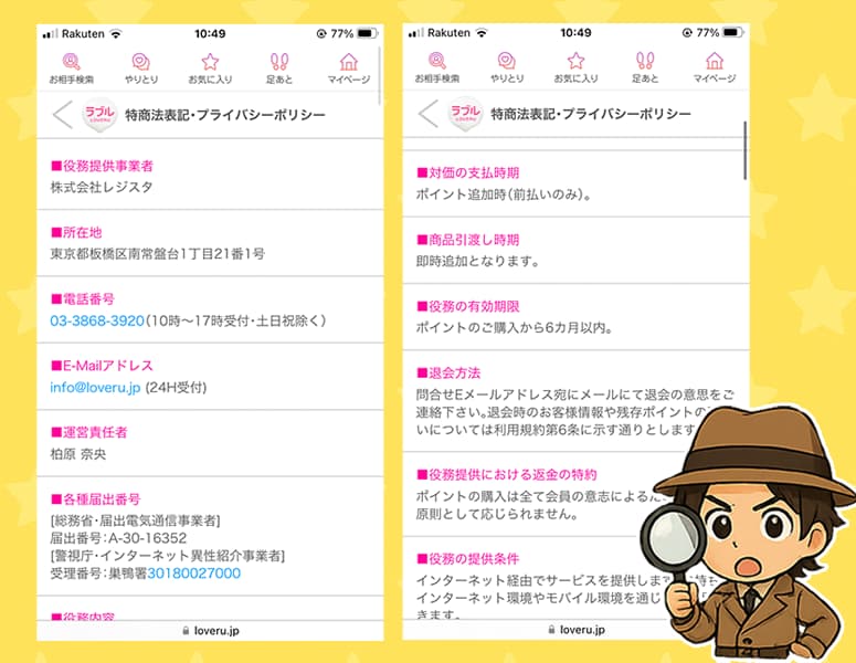 星野調べてみたところ、ラブルの特定商取引法ページには「インターネット異性紹介事業の届出が明記されているね。