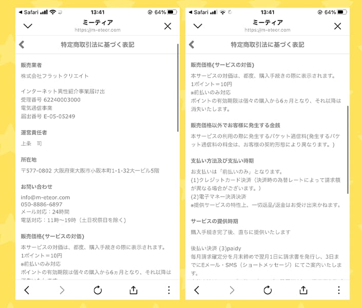 つまり、ミーティアは「一応届け出番号を記載しているが、法的に適切に運営されているかは不透明」というのが正直なところ。