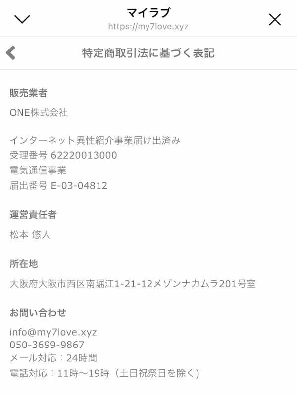 運営は大阪のONE株式会社で、インターネット異性紹介事業の届出も出しているね。