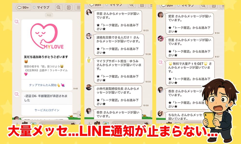 「これ本当に出会えるの?」「LINE登録したけどメッセージ多すぎて怖い…」なんて不安が広がってるようだね。