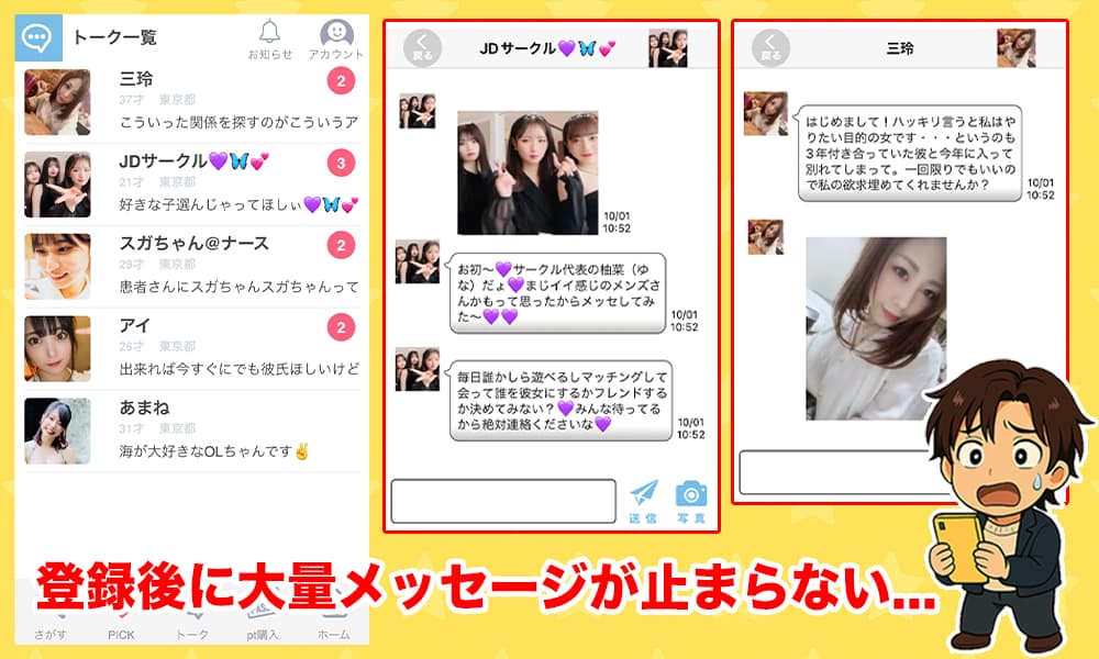 - 登録直後から会いたい系メッセージが大量に届く