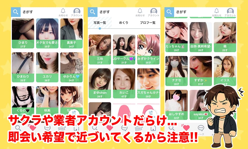 つまり、リアルに出会いたい人が使うには向いてないし、むしろ危険な罠が仕掛けられているアプリなんだ。