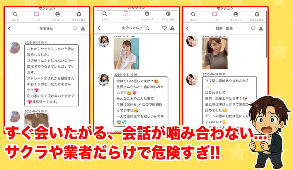 だけど、ポジション(POSITION)が安全に出会えるサイトかという基準で考えると、おすすめはできない!