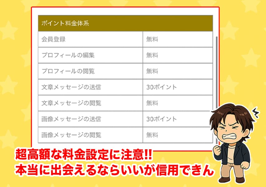 これ、マジでやばいな!大手の出会い系サイトと比べて、5〜6倍の高額な料金設定だな…。