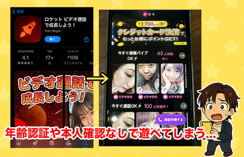 出会いやチャットや通話アプリなど、異性とのやり取りが発生する場合、本人確認や年齢認証などがないとマジで危険なんです!