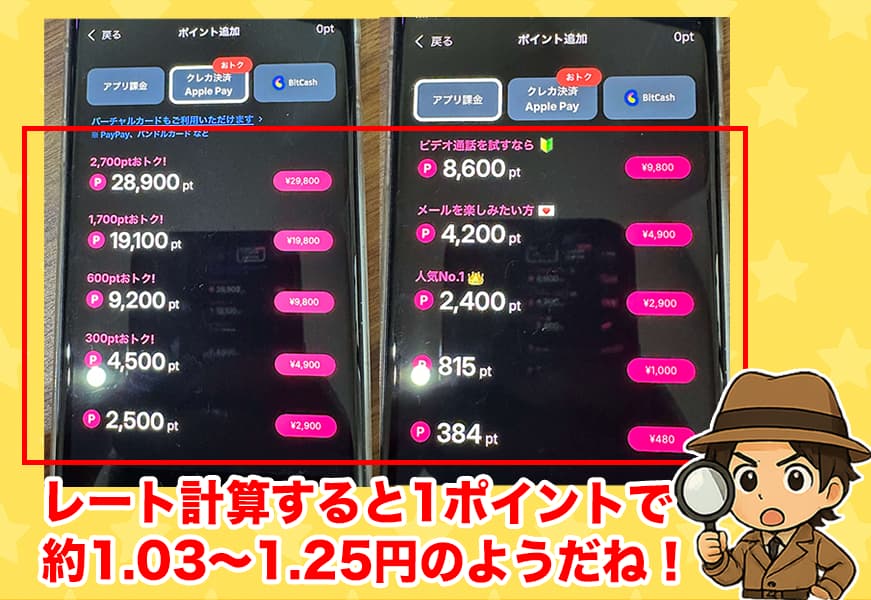 ロケットの料金システムはポイント制で、ポイント購入額によってレートが変わる仕組み。