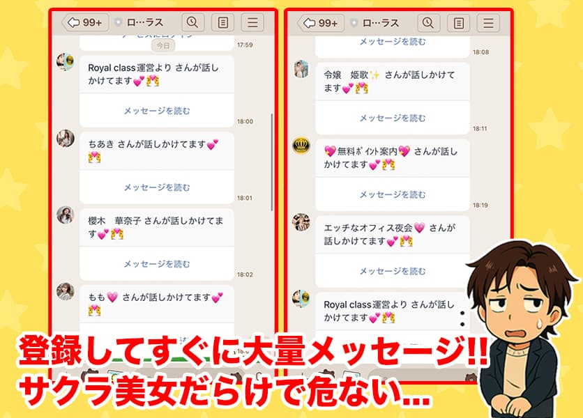 ② 登録直後にサクラや業者の美女から大量メッセージ・・・