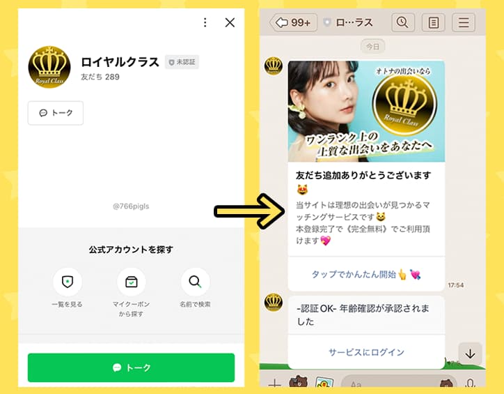 ロイヤルクラス(RoyalClass)のLINE出会いを登録検証!やってみた