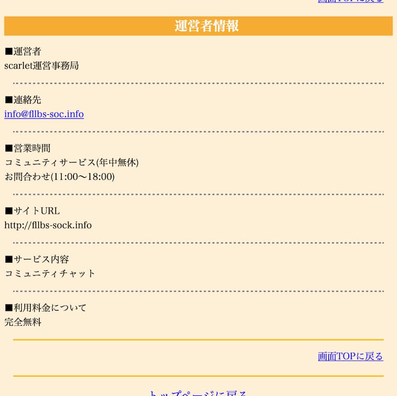 メールアドレス「info@fllbs-soc.info」だけが載っている状態で、これでは何かあっても運営責任を問うことが難しいってことになるからマジでリスクが高い!