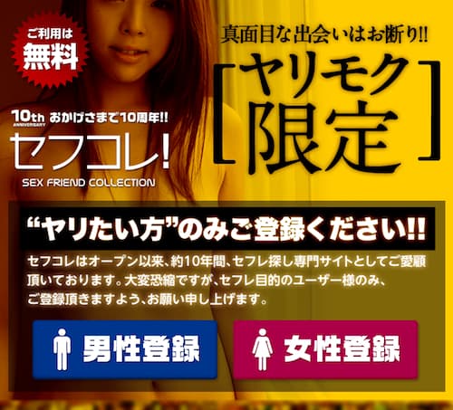 セフコレって完全無料だし、ヤリモク限定って書いてあるし、かなり気になるよな!😍