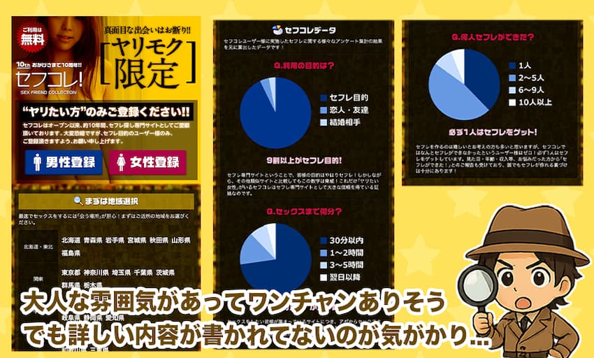 セフコレはオープン以来、約10年運営しているって書いてあって、長く続いてるの安心できる内容だけど。