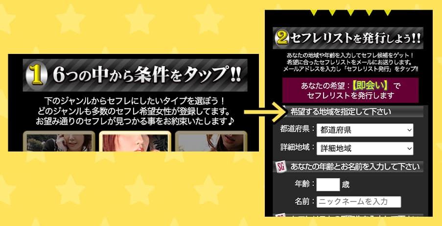 セフレゲットはあくまでも登録をさせて別サイトに飛ばすための役割で、特別なリストが貰えることはなく、出会える期待も持てませんでした。