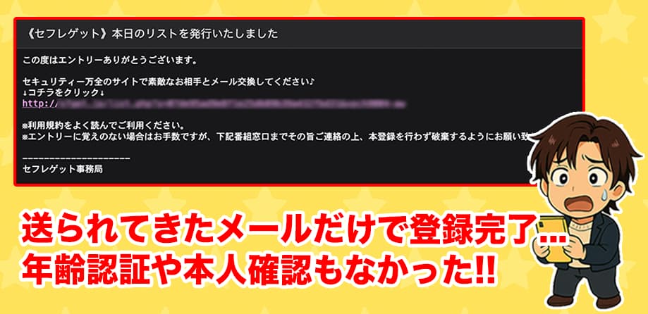 とはいえ、セフレゲットが危険かどうかを紹介ページだけで判断するのは早いから、ここからは俺が実際に登録して、何が起きるのかを検証していくぞ。