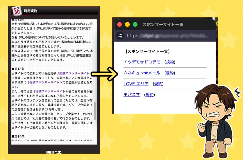 セフレゲットの利用規約を見てみると、こういう提携スポンサーサイトについての記載もあった。