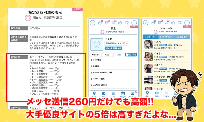 トーク送信が26ptで260円、閲覧も26ptで260円って時点で、会うまでにいくら飛ぶんだよって話!
