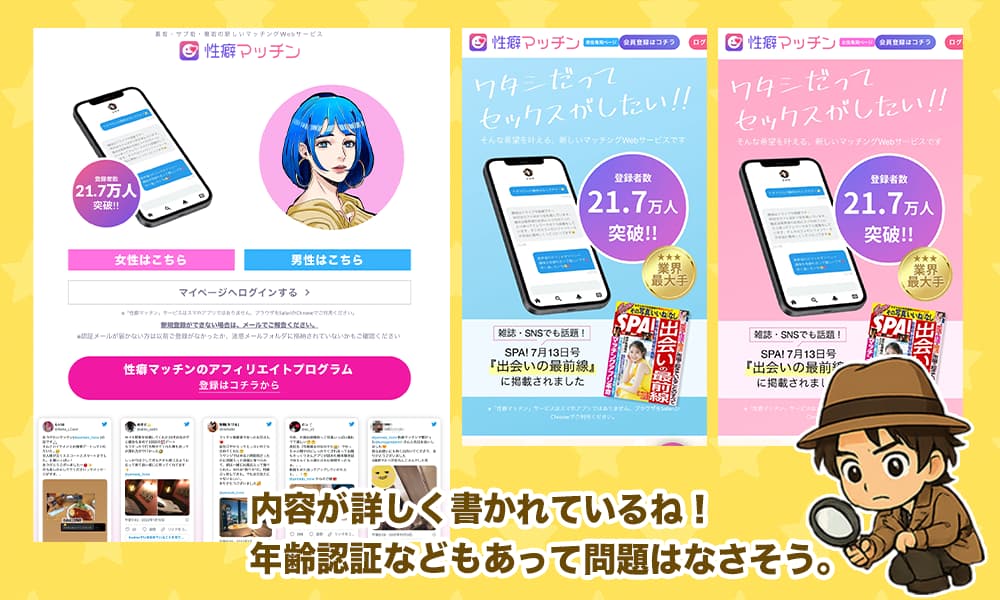 だからこそ、今回も「俺みたいな被害者を増やさない」って気持ちで、性癖マッチンをガッツリ調べてみます。